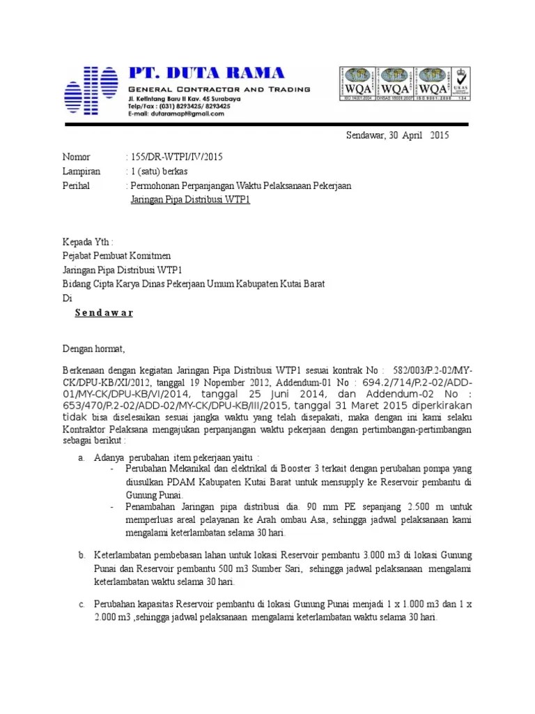 Contoh surat addendum perpanjangan waktu pekerjaan .